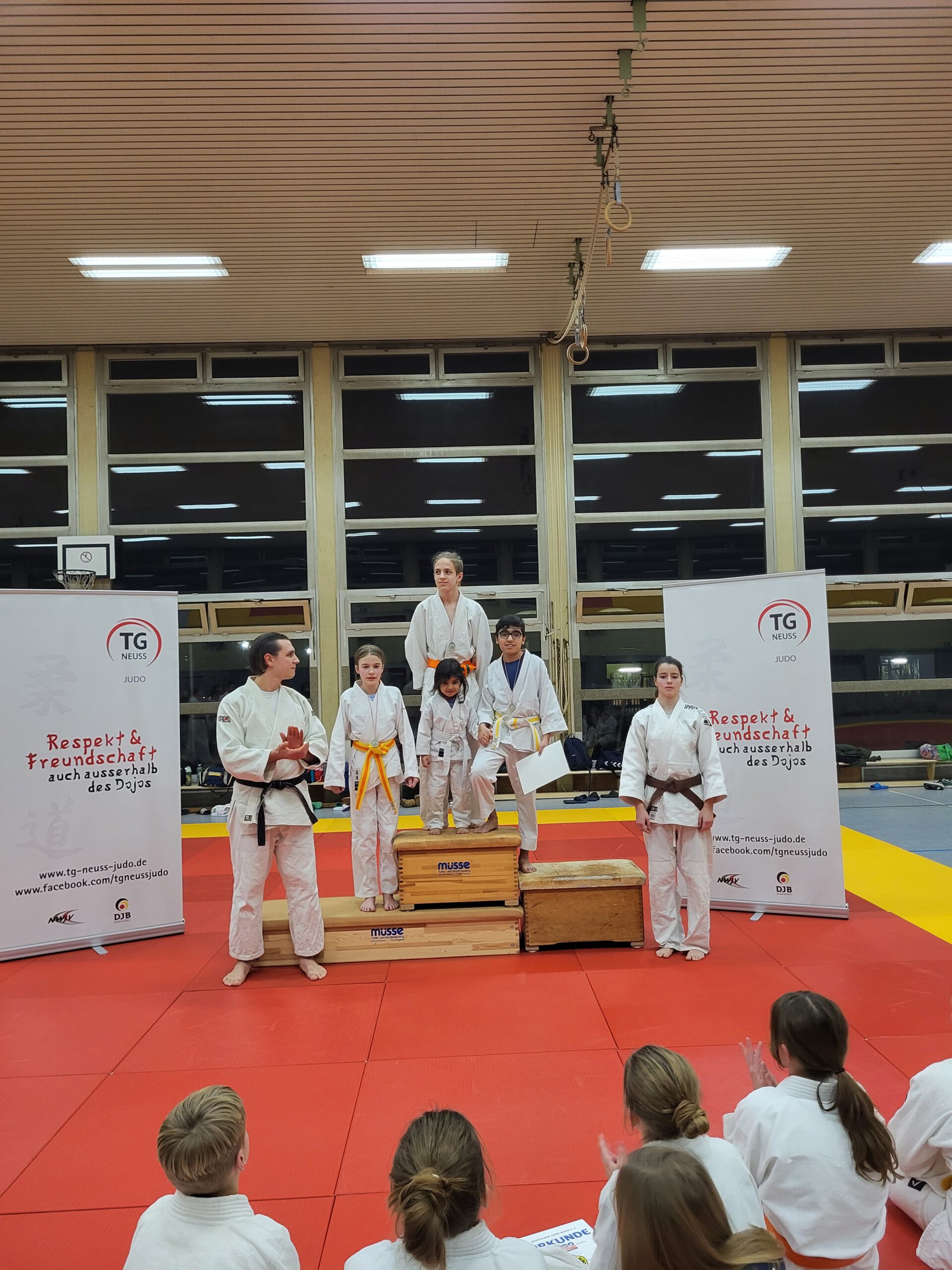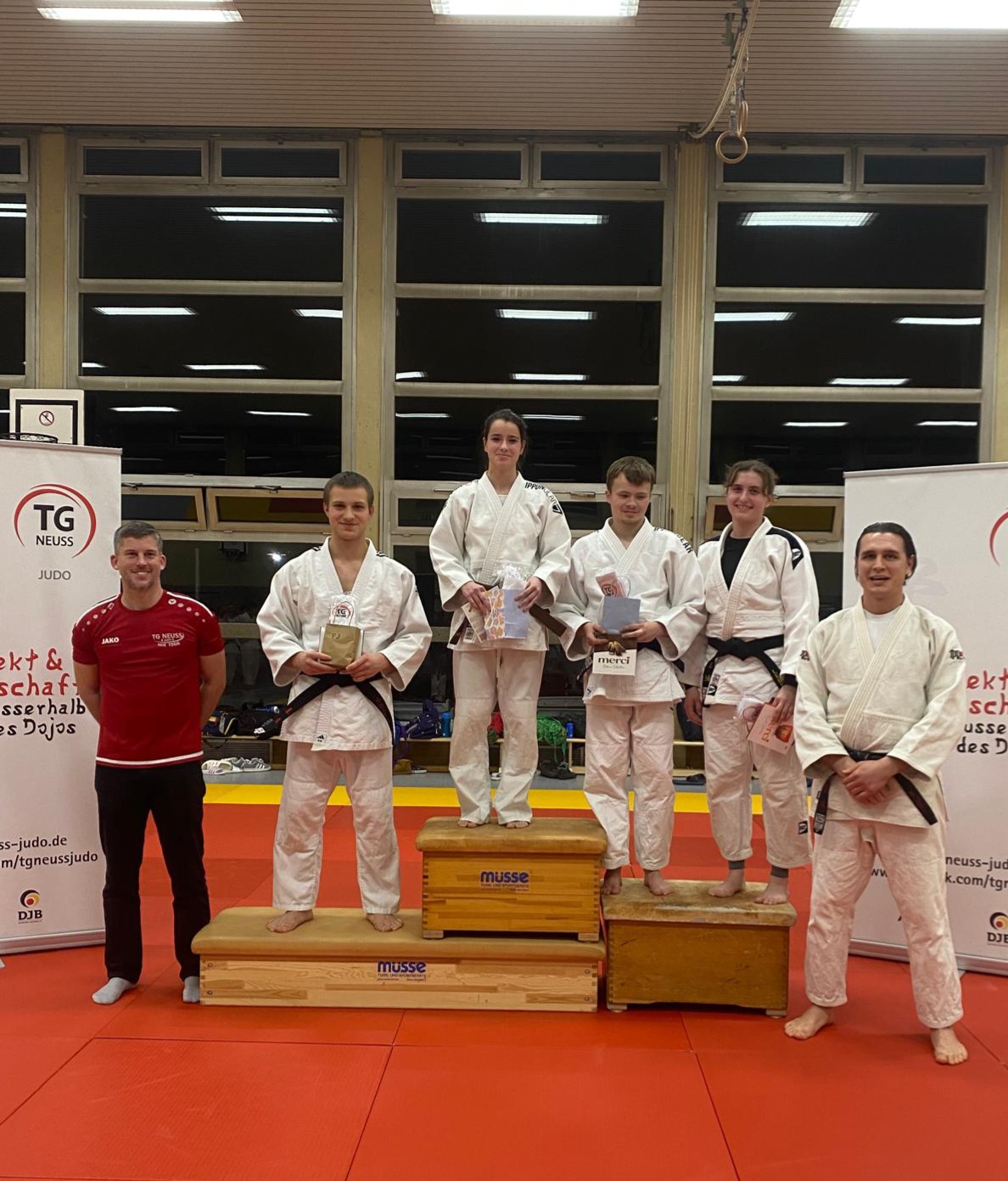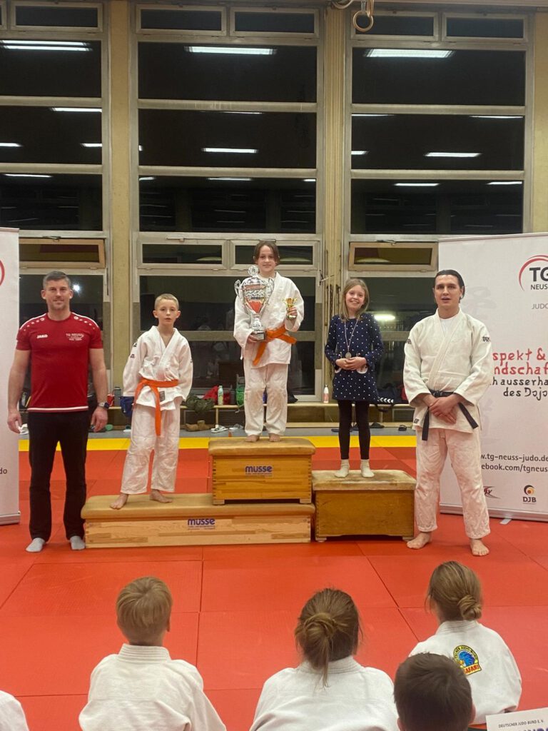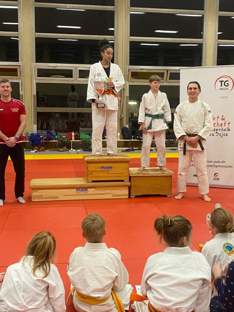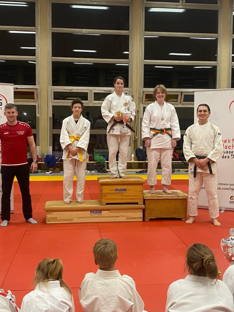 Abschließend wurde Lennart für sein besonderes Engagement im Jahr 2025 geehrt. Er unterstützt die Abteilungsleitung nicht nur aus der Geschäftsstelle der TG Neuss, sondern hilft auch ehrenamtlich aus: Erstellung von Turnierausschreibungen, Unterstützung bei Veranstaltungen, engagiert sich als Kampfrichter und übernimmt zahlreiche weitere ehrenamtliche Aufgaben.