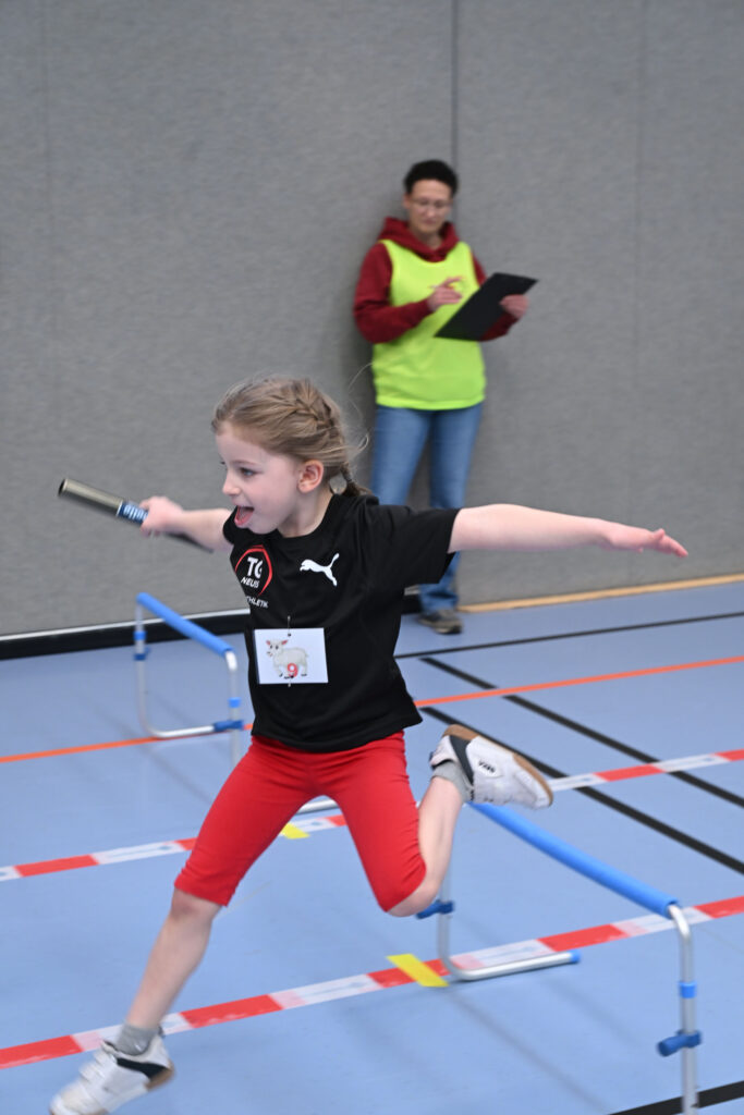 Die Kinder der U 10 absolvierten die Disziplinen Hindernissprintstaffel, Wechselsprünge und Medizinballstoßen, in der U 8 standen die Einbeinhüpferstaffel und ebenfalls Medizinballstoßen und Hindernissprintstaffel auf dem Programm.