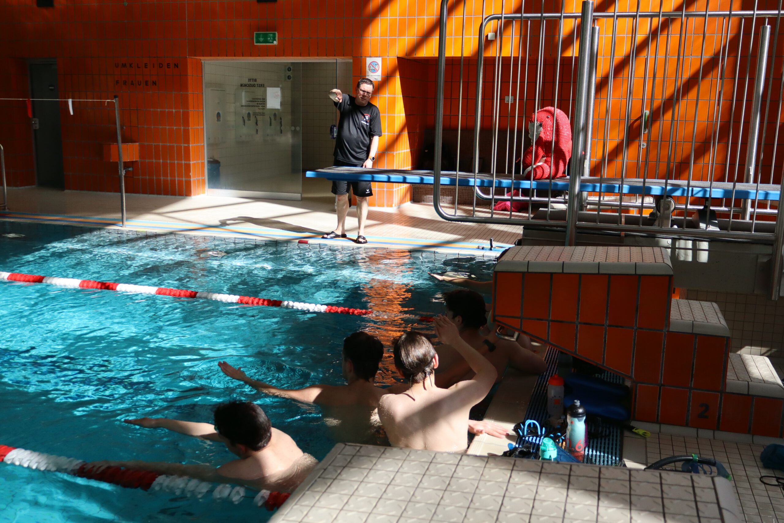 Nach der Anreise am Montag starteten wir direkt mit der ersten Schwimmeinheit inkl. Videoaufnahmen. Doch dabei blieb es in der Woche natürlich nicht; insgesamt waren wir 8 Mal im Wasser. Ergänzt wurden diese Einheiten durch abwechslungsreiches Landtraining wie Theraband- und Stabilisationsübungen.